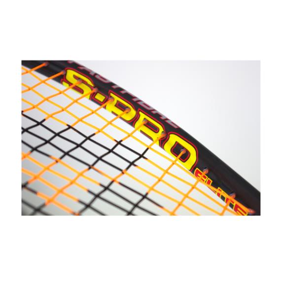 We have updated the artwork for the new season and added our Hot Zone strings in Orange, crystal clear grommet which allow the underlying decals to show through changing the look of the frame. Its basic architecture is designed around the S Series frames from our current range. The S Pro Elite has the same advantages as the S Series frames with a straightened frame profile to improve power and increase the sweet spot. The construction of this frame differs however as it is weighted and balanced to Pro specifications, the weight and balance have been adjusted to make a more evenly balanced frame. The weight and balance of these rackets coupled with the new Fast Fibre technology means the racket returns to shape 10% faster than conventional layups allowing you to create unprecedented levels of power.